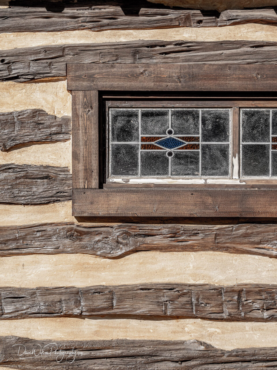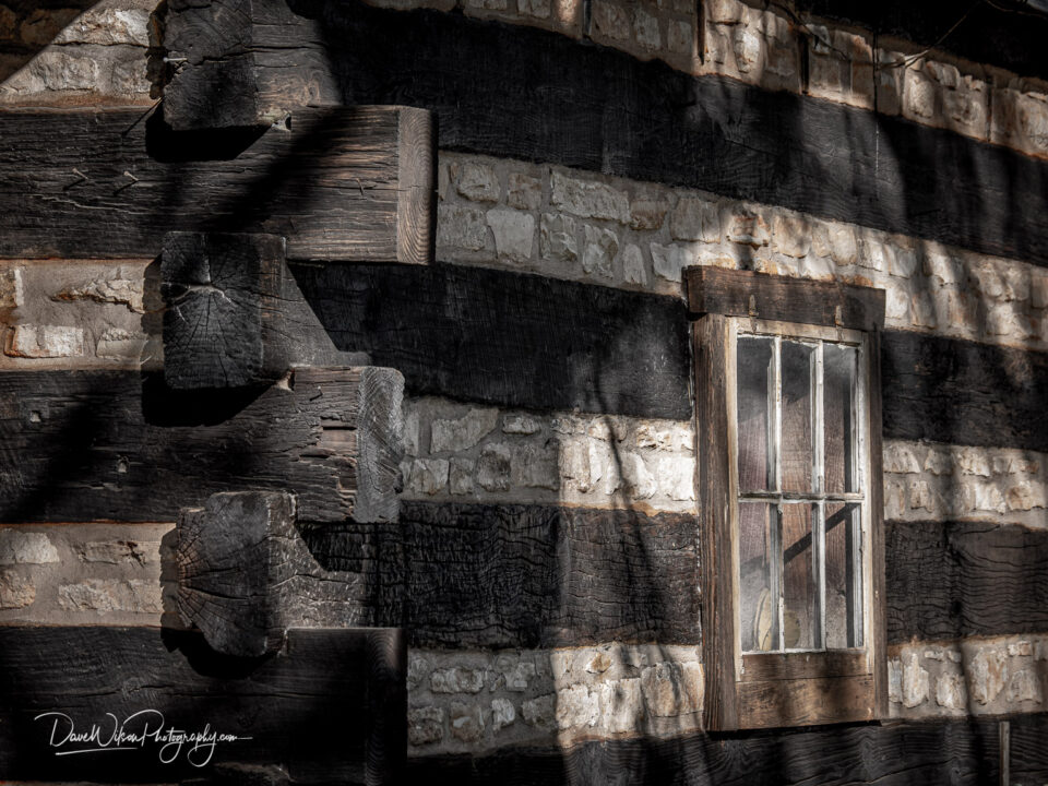 A detail of a log cabin at Barons Creekside in Fredericksburg, Texas, March 23rd, 2026.