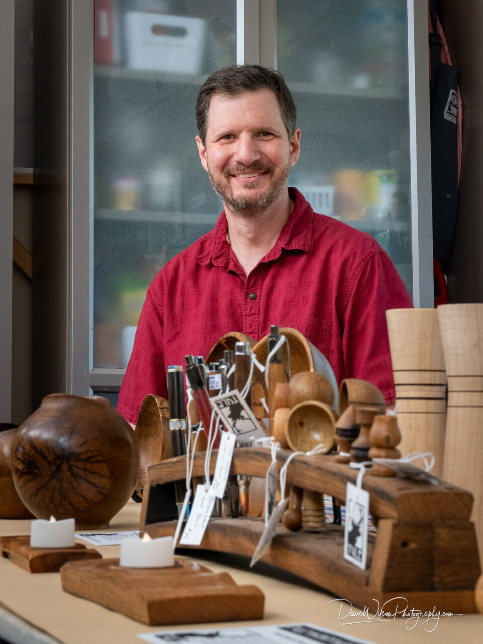 William Wigfield of “Tule Handmade Goods” displaying his woodwork at “Handmade on Nutty Brown” during the Dripping Springs Art League...