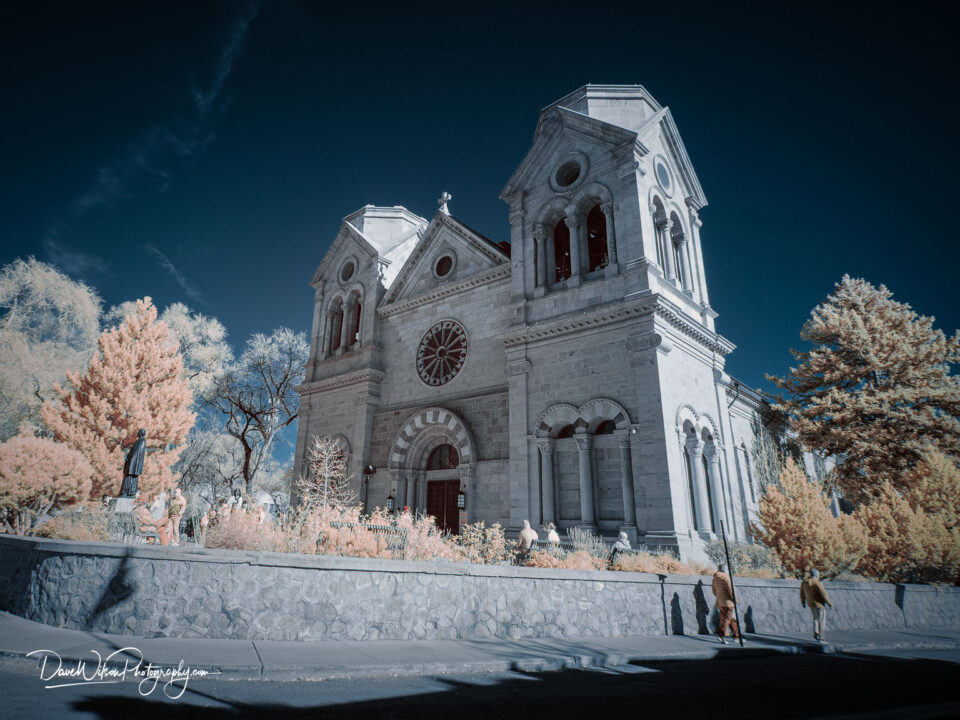 An infra-red image of the Cathedral Basilica of St Francis of Assisi which can be found one block east of the plaza in Santa Fe, New Mexico.